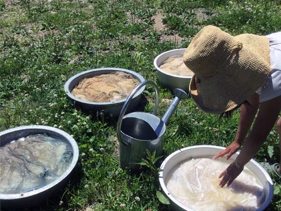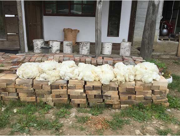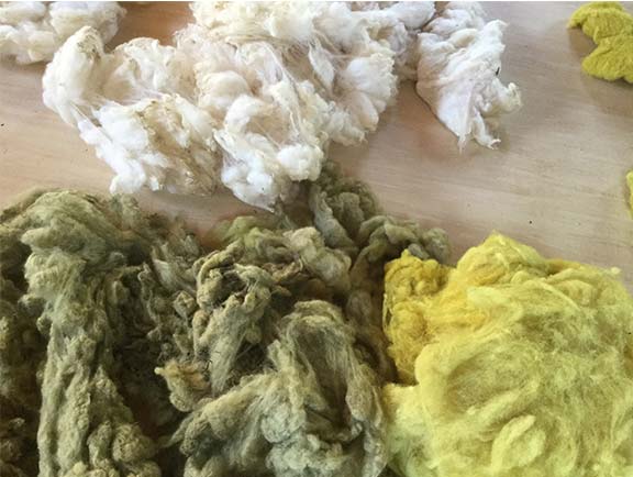 羊毛は身近に暮らすひつじたちの毛を主役にしています。 用途によっては、海を渡って来るものもあります。 洗いから、染め、毛を整える作業は全て手作業で行なっています。